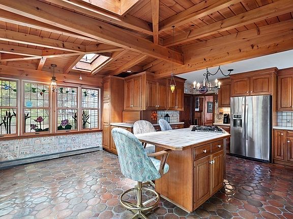 - Features: Beamed Ceilings, Vaulted Ceiling(s), Flooring - Stone/Ceramic Tile, Window(s) - Stained Glass, Dining Area, Kitchen Island