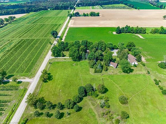 Exceptional opportunity offers 5 distinct residences & huge barn/loft (4000+ sqft)! Legal non-conforming rental units include 2 detach cottage-like bungalows, 1 barn apt & 2 separate dwellings in the main house. Perfect for earning a secondary income, or families that wish to stay close but want a space to call their own. Beautiful 10.28 acres of property sitting on a level lot with many mature trees & small, serene creek running through. MAIN HOUSE (rebuilt 1991): 2-storey with attached double car garage & comprised of 2 dwellings, both with independent entrances; UNIT A (2404 sqft): Appointed beautifully w grand foyer & curved staircase open to above, home office w exposed brick wall, updated kitchen w seated island & access to the patio beyond, separate dining area, living room w stunning f/p & surround, main floor laundry & powder room. Upstairs holds 4 good-sized bedrooms & 2 updated bathrooms including a 6-pce ensuite. Other features include crown moulding, pot lights & plank flooring. UNIT B (1556 sqft): Offers its own main floor laundry & powder room, eat-in kitchen with stove-top & wall oven, very cozy living room featuring wood-burning corner f/p w large stone surround, office area w window seat & garden door w/o to yard. Upstairs holds 2 generous-sized bedrooms, one with the same stone feature wall carried through, shared 4-pce bathroom & lots of closet/storage space. COTTAGE UNIT C (707 sqft): 1 Bed, 1 Bath unit with “His/Her” bedroom closet, laundry/mud room w additional entrance & a lovely covered front porch overlooking the front yard. COTTAGE UNIT D (1102 sqft): Spacious 2 Bed, 1 Bath unit offering ensuite laundry, wood floors, and huge primary bedroom with wall-to-wall closet and access to the outside. APARTMENT UNIT E (1346 sqft): 2 Bedroom unit with great bedroom size and storage, easterly views from the living room bow window & primary balcony. Separate hydro & gas meters. Unit C: Electric heating. Potential added income from barn & paddocks.