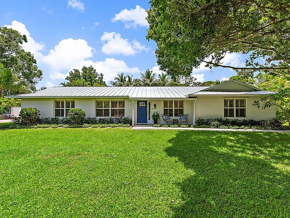 Experience modern country living with city convenience in Palm Beach Gardens. This fully remodeled 3-bedroom + office, 2-bath home sits on 1.15 acres with no HOA and has been upgraded top to bottom for peace of mind. Major updates include a 2023 standing seam metal roof, 2022 Lennox A/C with new ductwork, tankless propane water heater, impact windows with shutters, and a new septic/drainfield (2018).Inside, the open-concept layout centers around a designer kitchen with quartz countertops, custom cabinetry, and Thermador appliances with gas cooking, anchored by a modern vapor fireplace. Bathrooms, flooring, and finishes were fully updated in 2022.Step outside to a saltwater pool with travertine decking, a detached 3-car garage with bonus room, and a 25'x50' workshop with 50-amp ser perfect for car collectors, hobbyists, or entrepreneurs. A custom chicken coop adds charm for those seeking a sustainable lifestyle. All this just minutes from A-rated schools, shopping, dining, and Jupiter beaches.