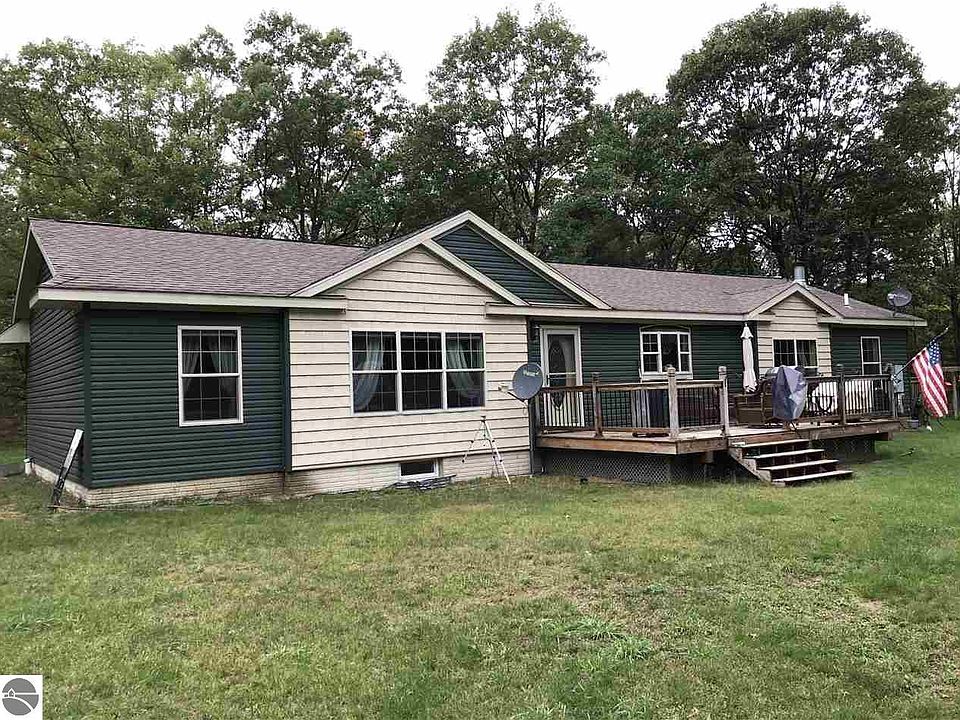 Stunning and spacious 1900 sq ft ranch style home built in 2010. Situated on 10 wooded acres in the heart of Clare County. This 3 bedroom 2 bath home is gorgeous and move in ready, featuring a beautiful kitchen with center island, massive Master Bedroom with private bath, living room with fireplace, family room, 2 more bedrooms and additional bathroom, full unfinished basement, 16 x 20 deck for entertaining,. main floor AND lower level laundry, GEO-Thermal heat, a 40 x 60 pole barn, 14 x 60 pavilion. With so many desirable features, this gorgeous ranch and property are a must see! On public maintained road just before seasonal road starts. All the creature comforts in a sportsman's paradise. Washer and dryer on main floor NOT included but the washer and dryer in lower level and refrigerator and range are included. All measurements are approximate.