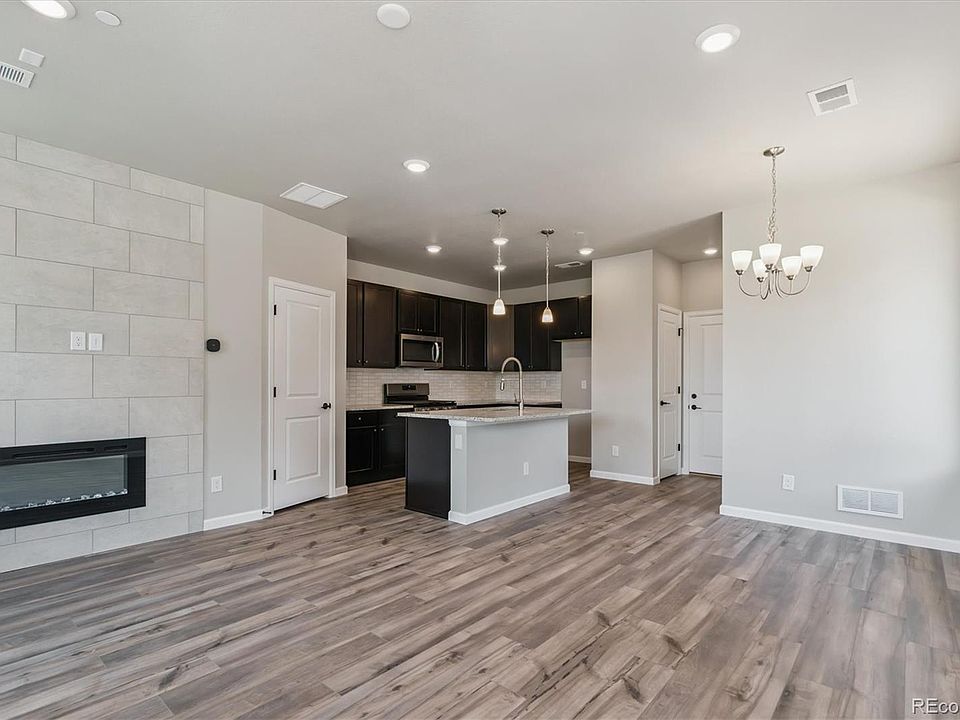 BRAND NEW CONSTRUCTION! Welcome to your Dream home in the charming community of Castle Pines. This stunning 1,369 sq. ft residence sits on a corner homesite and features 3 bedrooms and 2.5 modern bathrooms. Perfect for families or anyone seeking extra space. Step inside the beautifully designed kitchen equipped with Stainless steel whirlpool appliance including a gas cooktop, Elegant Grey cabinets and brushed nickel hardware, light fixtures and plumbing fixtures throughout