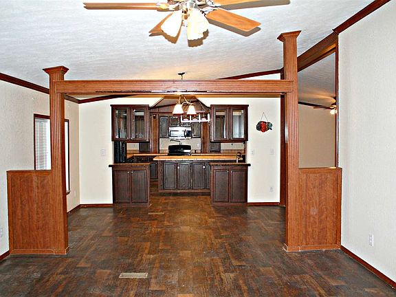 Country living at its best w/ this beautiful double wide on a permanent foundation. 12 acres of grazing land,chicken coops,turkey pen,sheep run,wind wall of trees on the south side of property,pomegranate bush,2 apple trees,1 peach tree,& 3 pecan trees. All that's missing is you, & the animals. New paint & new carpet being installed. Additional pad for 3/2 single wide w/ utilities & septic on property. All utilities available. Dexter water with booster pump house & multiple out buildings on property.