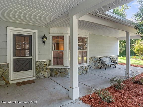 Stunning 2-Bedroom, 2-Bathroom, 2-Car garage home, on a Cul-de-sac in Hernando County's Preferred 55+ gated Golfing community of Timber Pines. This beautiful home welcomes you with tons of curb appeal and 23x7 L-shaped open front porch. Enter the formal living and dining rooms perfectly situated for entertaining including access to the climate controlled rear glass enclosed room. Cook like the chef in the galley style kitchen highlighted with tons of countertop/cabinet space, pantry, pass through window to the rear lanai, and separate 101x10 breakfast nook with bay windows overlooking the backyard. Retreat to the master bedroom of this home highlighted with vanity & makeup station, access to the rear glass enclosed room, walk-in closet, and en-suite bathroom with large single vanity and tiled shower. Guests can enjoy their own privacy utilizing the ample guest bedroom with large closet and guest bathroom featuring a spacious vanity and tub/shower combination. Inside laundry room sits just off the garage including tons of cabinet space, laundry tub, and large storage closet. Other features include screened 2-car garage with service door, fresh landscaping, and no build behind preserve area. Located in the peaceful and serene Pine Ridge Village of Timber Pines, an award-winning Gated 55+ Active Adult Golfing Community with THREE 18-hole golf courses, 9-hole pitch & putt, 2 clubhouses with community pools & hot tubs. Country Club with newly remodeled lounge and restaurant. 2 Pro Shops, Fitness Center, Billiard Room, Performing Arts Center, Pickle Ball, Tennis, Dog Park, and over 100 clubs and activities. WHO DO YOU KNOW......that needs to book their private showing to make this their new home? Call us Today!