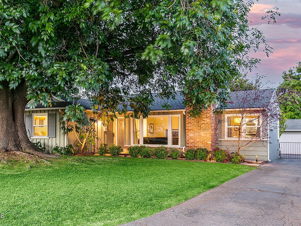 This lovely one-story Traditional-style home is located in a popular north San Gabriel neighborhood. The front yard with its majestic Ash tree and welcoming front porch provides a picturesque approach into this stunning residence. The living room features wood floors, a mantled stone-faced fireplace and a picture window overlooking the front yard. The formal dining room has wood floors and is adjacent to the kitchen for ease in serving. The kitchen with its Caesarstone counters, stainless steel appliances and glass tiled backsplash has a built-in seating area with storage below. All three bedrooms have hardwood floors, ceiling fans and are serviced by two remodeled bathrooms. The private rear yard with its wood deck and patio was recently re-landscaped with citrus trees and has new fencing on the north side. Additional features include Dual-pane windows throughout, Lennox heating and air conditioning, a two-car detached garage and a separate laundry room off the kitchen.