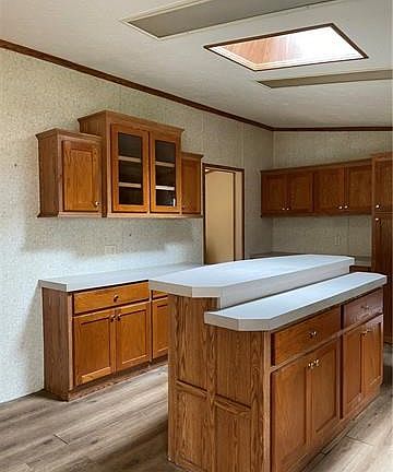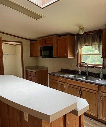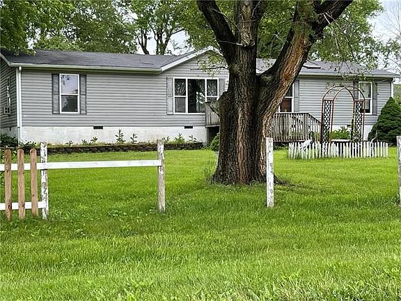 Manufactured home on 8.5 acres m/l with pond and 2 car detached garage with openers and electricity. Old barn and a pond. Beautiful setting. Selling as is and house needs some paint, flooring and a little TLC.