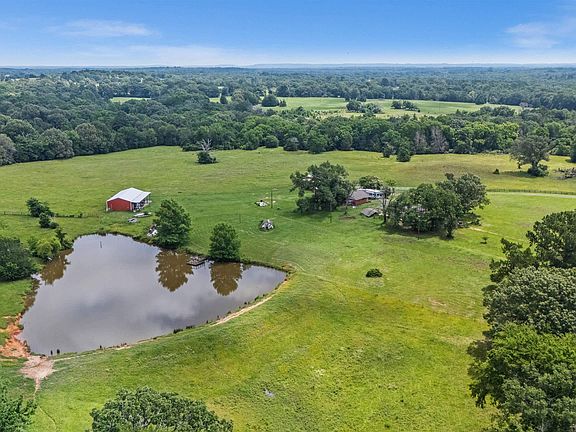 This 63 acre tract has it all! Full utilities, fenced and cross fenced, automatic gate, horse barn with tack room, 3 bay shop with car lift and central hvac. 2 additional outbuildings with roll up doors offer plenty of storage space and there's even a chicken coop already in place. The pond is approximately 1 acre and is stocked with catfish and holds water year round. This tract also features a continuous flowing creek that runs along the east end of the property. From the hilltop you will have amazing 360 views of the entire property making it the ideal location to place your new homesite! As another option the 1800 sq ft heated and cooled shop with front porch could be converted to a barndo style home or guest house. There's even electric and water already in place for an R.V. as well. Come see everything this property has to offer!