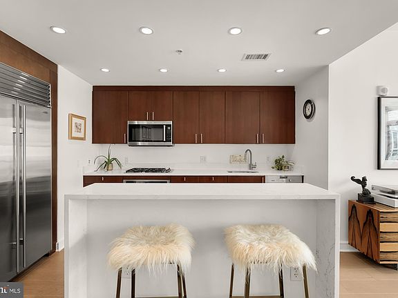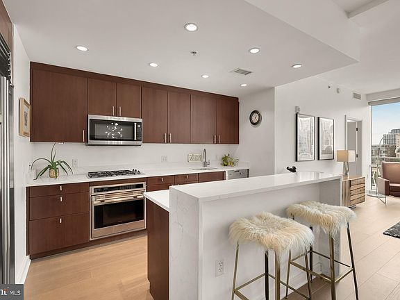 A Modern Luxury Retreat in the Heart of Downtown Bethesda. Welcome to a truly one-of-a-kind penthouse at The Adagio. <br> Bathed in natural light and offering panoramic views, this thoroughly updated / renovated residence blends tasteful and elegant updates with everyday convenience. The main level features updated wide plank wood floors as well as a gourmet kitchen with high end appliances (Subzero Refrigerator, Bosch Cooktop, Wolf Oven, Miele Dishwasher!), gas cooking, and recently updated quartz counters. <br> The generously sized living room and dining area includes a new electric fireplace; and leads way to a large balcony with sweeping southwest views. And the main level is flanked on either side by 2 spacious bedrooms, each with their own en-suite dark marble baths as well as a dual vanity in the primary. <br> Upstairs, a large den or home office opens to a truly spectacular HUGE private terrace (approximately 14’ x 40’!) perfect for quiet mornings, al fresco dinners, or entertaining under the stars. The upper level adds an additional 237 interior square feet and the 560 sqft+ large outside terrace area also features a retractable fully encompassing awning - bringing the total living and entertaining area to approximately 2,046 square feet (public records reflect only the 1,312 sqft of main level interior space). Another rare feature, the upper level of this unit can be accessed by the building elevator via private penthouse corridor - so if stairs aren’t your thing (now or in the future) you need not fear! This penthouse corridor also features a rarely used communal reading room/den creating another building extension to your one of a kind outdoor living space, almost unheard of in Bethesda (and certainly at this price point!!). <br> Additional features of this beautifully updated and well kept unit include two premium garage parking spaces (B4-67 & 68), two oversized storage lockers (B4-13 & 14), and a suite of luxury building amenities. The Adagio is a 24/7 concierge elevator building with a fitness center, an overnight guest suite, and even guest parking. Located just steps from Bethesda Row, Red Line Metro, Trader Joe’s and Target, as well as some of our area’s top dining and shopping destinations, this penthouse is as rare as it is refined. A home that offers privacy, presence, and the pulse of the city just outside your door. Come see for yourself today!