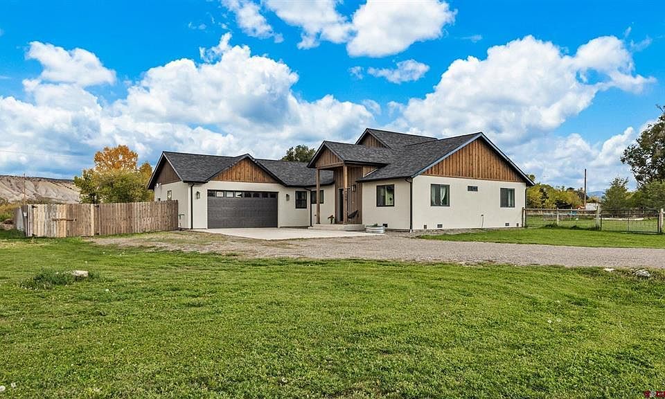 Welcome to Montrose Colorado! As you enter this beautifully constructed home, you’ll feel the flow of a well-designed floorplan and the natural light throughout. This welcoming home is bright and open, but with the soothing color palette, it has a comforting, “come on in” feel to it! The Great Room has big, tall windows and a sliding door leading out to a large, covered patio and lush, fully fenced lawn with sprinkler system for cooler afternoon lounging or cookouts! The kitchen is spacious, efficiently designed and has stainless steel appliances surrounding the large quartz island with seating for entertaining or just hanging out with your favorite morning coffee buddies! The large Primary Suite has its own sliding glass door which opens to the back patio facing south. The ensuite bathroom has a soothing spa feel with the lovely walk-in shower, dual sinks, and separate soaking tub. The Split floor plan with good sized second and third bedrooms and a full bathroom on the other side of the home gives personal space for everyone. The HOA provides a shared water ditch to irrigate the property for only $250/year, and the 1.25 acres allows plenty of room for a shop or outbuilding, There is also RV parking. In the front/side yard with sprinkler system, the recently installed, landscaped pond with filtration system is another peaceful and enjoyable spot! Morning Yoga by the pond? Evening Lounge chairs and cocktails watching the fabulous western sunsets? This excellently designed home is just on the outskirts of town for a country feel, but close to all the amenities! Head North a few miles to shopping, parks, walk/bike river tails, dining and healthcare. Ready for some Adventure? Outdoor Beauty and Recreation Surrounds you Here! Head East to Silver Jack, Blue Mesa Reservoir, Gunnison, and Crested Butte for the Wildflower Festival, Art Galleries, skiing and the gorgeous Kebler Pass Drive! Head South, and HERE IS WHY EVERYONE COMES TO WESTERN COLORADO! The Amazing Colorado Mountain Adventures Open Up to You from Here! From Ridgway, head south to Ouray, the “Switzerland of America” with Winter Ice Climbing, Hot Spring Pools, and the Infamous Million Dollar Highway that will lead you into the Incredibly Stunning San Juan Alpine Mountain Vistas and freezing cold, clear aqua lakes and Mountain Streams! Or head Southwest from Ridgway to Telluride and Mountain Village for World Class skiing, dining, Après Ski Parties, and Alpine hiking and riding further down the 145 with turquoise lakes and Unbelievable Mountain Views! Is MOAB, Utah on your bucket list? You can be there in less than 3 hours for some world-renowned riding and hiking through Canyonlands and Arches National Parks! Homes in this desired, small community are now pricing over $1,000,000 so grab your Favorite Realtor or Call Today to see this spectacular home before it’s snapped up!