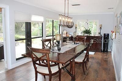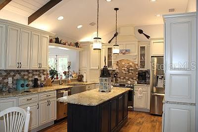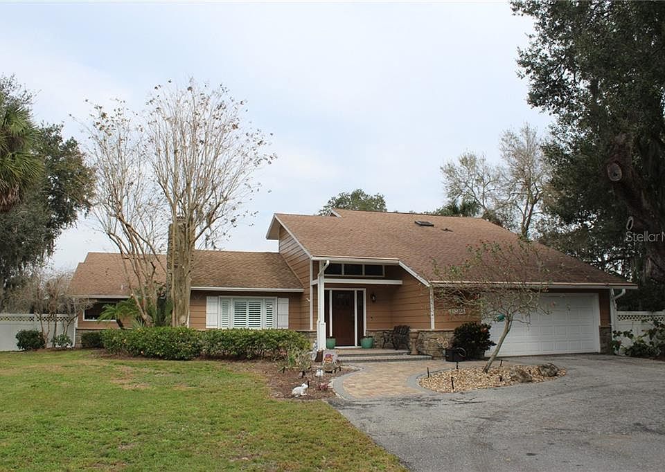 WOW this is the one! From the moment you pull up to this acre property with a huge circle drive and majestic cluster of oaks in the front you will be wowed. Gorgeous 12" wide wood plank tile floors, plantation shutters and stone fireplace create a warm cozy livingroom. The kitchen features LG studio stainless appliances, tile blacksplash and a potfiller above the stove. The concrete farm sink adds to the large island and pass through to the light and bright diningroom. Then you also have an large vaulted ceiling family room with built-ins, a wet bar, and french doors. That lead to the covered lanai and the amazing huge pool area. The 20x40 deep water pool with a sunshelf and a diving board and an exta large paver pool deck create another living area. The master bedroom is on the first floor! The downstairs also has a great custom walk in pantry with pull outs and a seperate laundry room with a grantite top sink. Upstairs you will find 2 bedrooms and a full bath. With a completely fenced backyard your children, granchildren, boats, Rvs, toys, pets will be secure. No deed restrictions or HOA.