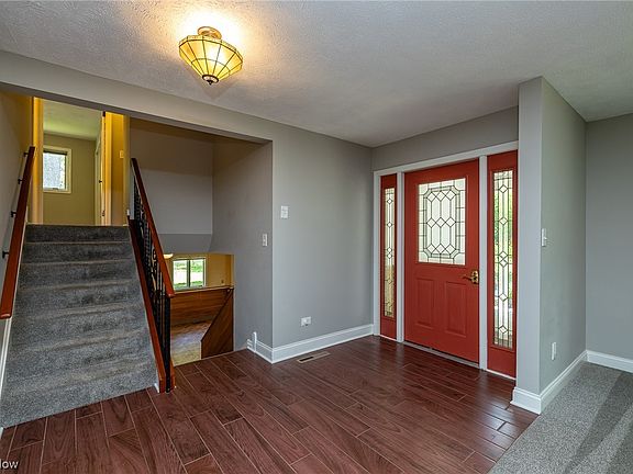 This Gates Mills split is nestled into a picturesque ½ acre yard w/ mature trees, ravine, & magnificent curb appeal. 3100 sf of living space on 3 levels w/ tons of natural light & spectacular views of backyard. From the front door is a great view of the backyard thru dining room bay windows. To the left is a cozy yet bright living room. To the right are stairs leading to lower & upper levels. Thru the dining room is access to the eat-in kitchen w/ granite countertops, stone backsplash, ample cabinetry, & large eat-in area w/ more bay windows. The main level (except living room) features porcelain ceramic tile floors that look like wood planks. Off kitchen are laundry & powder rooms, plus door to the sun room w/ 3 glass walls-it feels like you're outside, but no bugs! Lower level huge rec room w/ tons of storage & full bath has endless options for the space. Rec room leads to "ravine room" w/ vaulted ceilings, wbfp, & 2 sets of glass sliders w/ views of the trees & ravine. Upstairs are