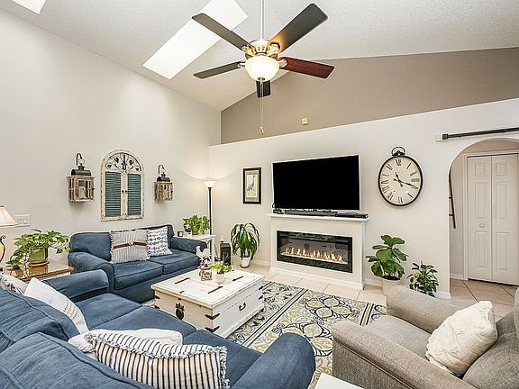Beautiful remodeled 3 bedroom, 2 bath home located on a quiet cul-de-sac. Open floor plan with vaulted ceilings, new electric fireplace and room darkening blinds. Custom wood kitchen cabinets with soft close doors and drawers. Granite countertops with extended edge for bar seating. Newer lighting inside and out with appliances that feature a 5 burner gas stove. Bathrooms have been remodeled and master bath features a soaker tub. Fan lighting in all 3 bedrooms, great room and screened in porch. Exterior has been newly painted and a new garage door opener was installed. Nature lovers will enjoy the water view while sitting in the shade of oak trees. Sandhill cranes, spoonbills, blue herons and occasionally a family of otters share the backyard pond. The oversized lot has plenty of room to add a pool.