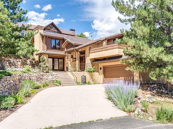 This custom, multi-level home has been beautifully updated throughout. The landscaped yard is partially wooded with rock-terraced retaining walls & beautiful shrubs, perennials & flowers surrounding a walkout patio area with views of the foothills & rock outcroppings. The home's stucco & cedar siding exterior was just painted in July 2020. Located in the Roxborough Park gated community & surrounded by Pike National Forest, Chatfield Reservoir, Roxborough State Park & Arrowhead Golf Course offering an impressive combination of outdoor activities. The home's vaulted ceilings, skylights & a window filled sunroom create an open & bright living space with excellent views. The kitchen features granite counters, stainless matching appliances & hardwood floors. Adjacent to the kitchen, the spacious dining area also offers hardwood floors & built-in cabinets. Next to the kitchen & dining room an additional game room with the same hardwood floors & vaulted ceilings bringing all these living areas together with plenty of natural light. The sunroom offers great views & a walk-out balcony. Updated lighting & plumbing fixtures, solid core wood doors & all carpet, hardwoods & tile flooring is in excellent condition. The spacious master suite features vaulted ceilings, skylight & a private deck. The 5-piece master bathroom includes a walk-in closet, glass shower enclosure, jetted tub & stone tile. The cozy living room offers a wood-burning, stacked stone fireplace, built-in cabinets, new carpet & walk-out to an outdoor patio. A bedroom adjacent to the living room includes a walk-in closet that could also be used as a study. The laundry room includes washer, dryer, utility sink, & cabinets for storage. Two additional bedrooms offer vaulted ceilings & skylights next to a full bathroom with tile, shower & vanity. The attached two-car garage offers plenty of space & includes 220 electrical & cabinets. Pet free, smoke-free home. One year buyer home warranty included.