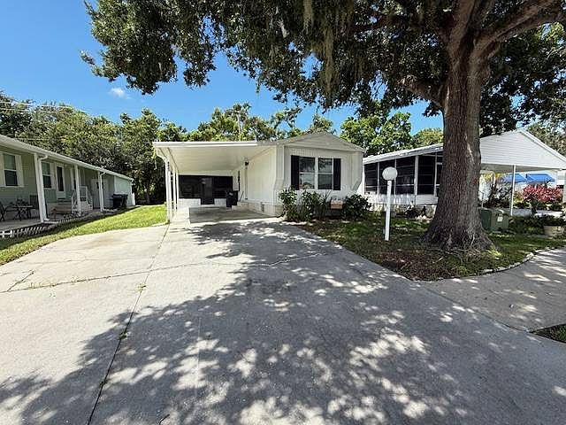 At Ridgewood Estates you can enjoy the spacious clubhouse or the well-designed banquet room. Relax with a nice game of billiards. Read a book chosen by you from the on-site library as you hang out by the community swimming pool or in the whirlpool-spa-hot tub. This gated community also offers you more strenuous pursuits such as shuffleboard, horseshoes, or a workout in the well-equipped fitness center, if that is your preference. On-site laundry facilities and waterfront sites are also available to add to your ease of living, and on-site management adds to your peace of mind. With an easy-going and friendly atmosphere, the lush tropical setting of the Sarasota/Bradenton metro area, and a plethora of amenities, Ridgewood strives to make your life comfortable and convenient. This 1988 home features 2 bedrooms and 2 bathrooms and sits on a PERIMETER LOT. There is laminate flooring throughout, stainless steel appliances, and a private porch on the back of the home, along with a private backyard. There are nice blinds on all the windows. The living room features laminate flooring, neutral walls, and natural light, and is open to the kitchen. The updated kitchen features nice white cabinets and light counters, a farmstyle sink, tile backsplash, stainless steel appliances, and a center island with extra storage. The eat-in kitchen has a nice window above and is open to the living room and kitchen. The master bedroom features neutral walls and laminate flooring, and is a nice size. The attached master bath features a corner step-in shower, and new vanity with ample storage. The second bedroom features laminate flooring, neutral walls, and a nice-sized double closet. The guest bath features a step-in shower with updated shower surround and glass doors, updated vanity, and a high toilet. The Florida room is a great outdoor space at the back of the carport. At the back of the home there is a covered porch that opens to the private backyard. There is indoor laundry in the home with a washer and dryer. All Florida Mobile Home Sales Inc. cannot guarantee or warrant the accuracy of this information or condition of this property. The buyer assumes full responsibility for obtaining all current rates of lot rent, fees, and pass-on costs. Additionally, the buyer is responsible for obtaining all rules, regulations, pet policies, etc., associated with the community, park, or home from the community/park manager. All Florida Mobile Home Sales Inc. is not responsible for quoting of said fees or policies. LOT RENT: $1252 includes lawn and trash.
