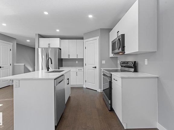 Discover this brand-new duplex in Tri City Estates, perfectly located near schools, shopping, and walking trails. The main floor features an open-concept design with modern pot lighting, a stylish kitchen boasting white cabinetry, granite countertops, island, pantry, and included appliances. The fully finished basement expands your living space with a spacious family room, additional bedroom, and full bath. Step outside to a large fenced and landscaped backyard, ideal for summer enjoyment. With a 10-year new home warranty, this move-in ready property offers comfort, style, and peace of mind.