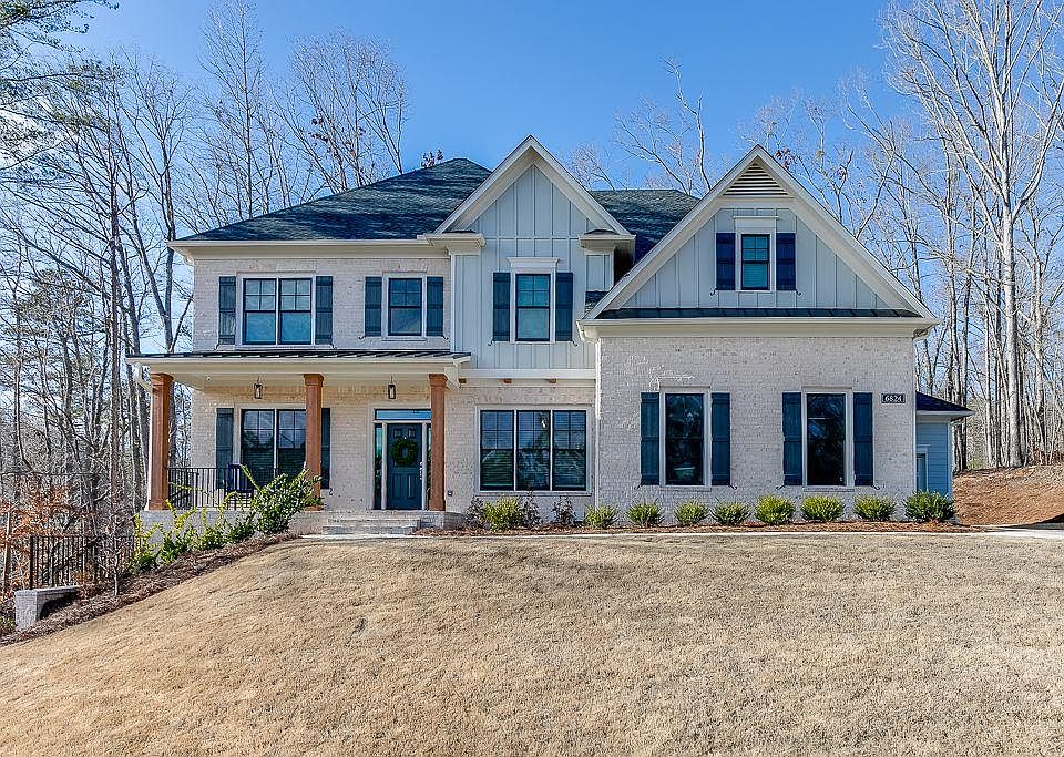 We bring to you a remarkable custom home in the Sterling on the Lake community, with resort-style amenities and lifestyle events for the entire family. Nestled on a sprawling 1.7-acre lot, this homes offer the perfect blend of space and tranquility. Features 6 bedrooms and 5 full baths. The two story foyer opens up to the dining room, formal living room, and a spectacular two story great room with a cozy fireplace, wall of windows for natural light & gleaming hardwood floors; The kitchen is an entertainer's dream, featuring abundant cabinetry, quartz countertop, large Island, custom walk-in pantry, and stainless-steel appliances including a gas stove top, microwave, dishwasher, & range hood. The first floor also features a full bedroom and full bath, built-in desk/craft room, separate Breakfast Room with views, & mudroom. Upstairs features oversized owner's suite, offering a spa-like bathroom, double vanity, separate shower & soaking tub, his/her closet. 3 spacious secondary bedrooms, one with its own private bath, walk in closet and the other 2 served by a Jack/Jill style bathroom plan, The terrace level also has an additional bedroom and full bath. Enjoy your favorite movies in the theater room or the family room, The kitchenette is perfect for an in-law suite, private gym offers opportunities for leisure and wellness at home. Separate game room for cards, video or arcade games. Private backyard Surrounded by breathtaking natural beauty, this vast expanse of land provides an unparalleled opportunity to design and build the perfect custom residence. Bask in the endless potential for creating a private estate, complete with spacious gardens, a luxurious outdoor living area, and ample room for recreational activities. The generous acreage not only invites creativity and personalization but also ensures privacy and seclusion, making it a rare find for those seeking to craft their own sanctuary. Amenities include a clubhouse, gym, movie theater, swimming pools, tennis/pickleball courts, nature trails, a lake for fishing and kayaking, and even a tree house! Conveniently situated near a major hospital, highways and other essential medical services, police and fire stations, schools, shopping, restaurants,& Atlanta Falcons training camp.