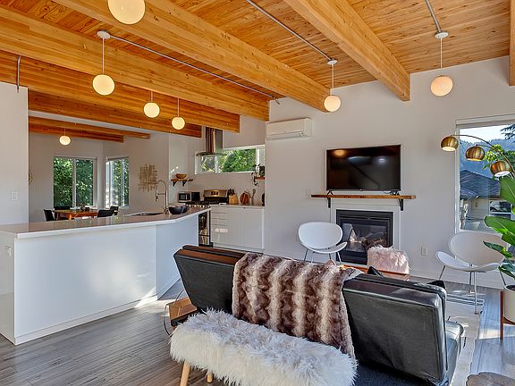 Other amenities include a master bedroom, gas fireplace in the living area, attached single car garage, and a covered patio off the kitchen that is perfect for year-round entertaining. Home features radiant floor heating in the bathrooms and Dual AC/heat pumps.