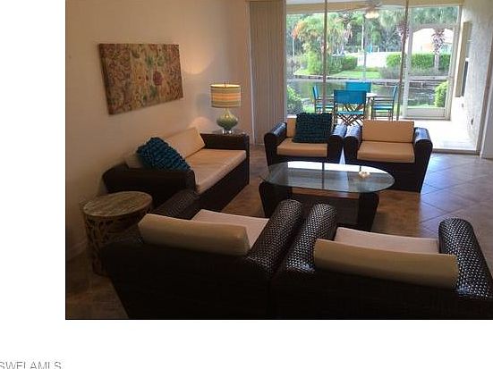 Super North Naples location. Enjoy total carefree living in this clean, sunny "Turnkey/Furnished" 2/2 Lakefront condo. Just a few steps to the community pool and club house and all of the other amenities in this quiet community. New tile thru-out. Spacious kitchen features custom wood cabinets, granite counter tops and upgraded appliances. Located just a few minutes drive from Mercato shopping area and the warm Naples beaches. Community also features Har-Tru tennis courts, social room, fitness center and miles of biking, jogging, walking trails. Priced to sell!