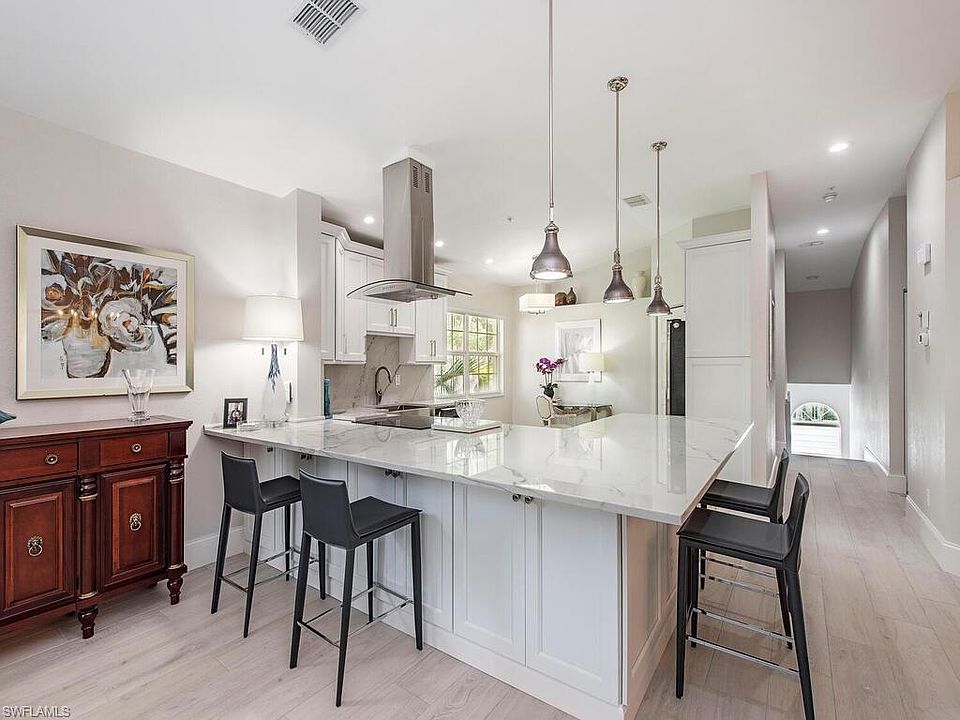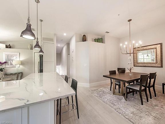 No detail has been overlooked in this immaculate and completely remodeled 2nd floor, 3 bedroom / 2 bath carriage home in Calusa Bay South. Every inch of this unit was renovated with the latest in luxury finishes. The re-designed kitchen is a highlight with an oversized Carrara quartzite island, countertops, and backsplash. Brand new wood tile flooring and LED lighting installed throughout. A gorgeous master bath features a large walk-in shower and double quartzite vanity. Meticulously maintained with volume ceilings and an abundance of windows offering beautiful, natural light. The screened lanai boasts one of the best views in the neighborhood, overlooking the lake and pool...plus a great place to sit and enjoy the Naples' sunsets. The secure gated community of Calusa Bay includes tennis courts, two pools, a clubhouse and fitness center. Everything you are looking for just minutes away from world-class dining, shopping, and the amazing Naples beaches!