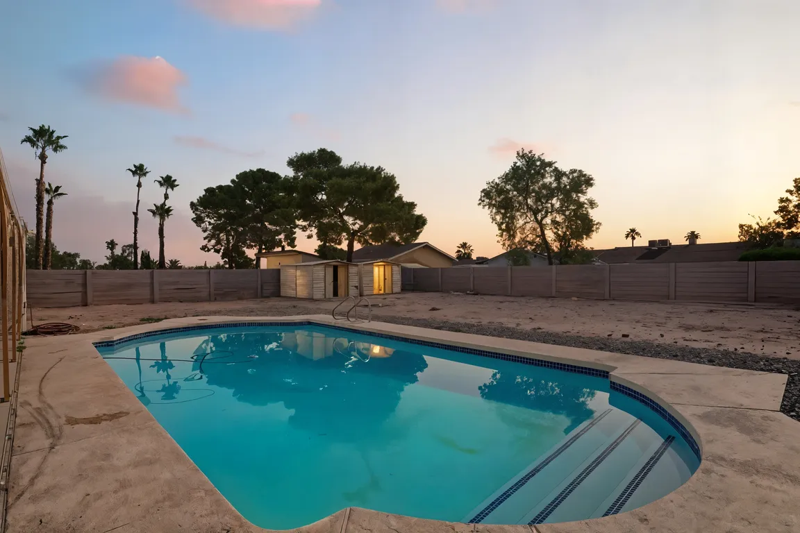 Sparkling poolHalf-acre lotCovered patioPrivate backyard oasisAmple room for gatherings