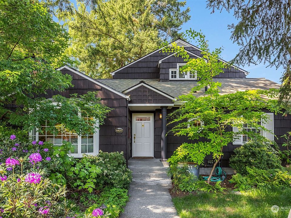 Nestled in the most sublime setting, this wonderful Cape Cod is surrounded by lush gardens, secret patios and private decks. Remodeled from top to bottom with pretty formals and an amazing kitchen/family room combination that flows easily outdoors for perfect evening soirees on warm summer nights. Upstairs a beautiful primary suite and spa-like bath has doors that open to a balcony overlooking the gardens below and territorial views all around. Another bedroom and full bath share this level and two more bedrooms on the main share a 3/4 tile bath. Great space for rainy day play in the cozy knotty pine rec-room or play hopscotch, paint and craft to your hearts content in the unfinished part of this level. Close to View Ridge Park and School.