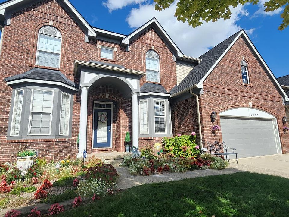 Welcome to The Gardens at Central Park and 6827 Blackwell, Shelby Township a charming colonial-style single-family home that perfectly blends classic character with modern updates. This beautifully cared-for 4-bedroom, 2.5-bath home sits beside a picturesque perennial garden and backs onto the neighborhood trail, offering a peaceful and open view.
