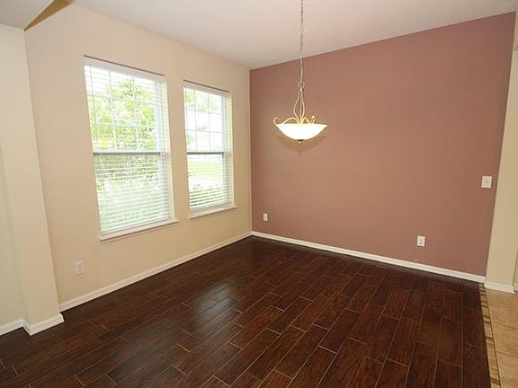 This inviting David Weekley Home is located on a manicured, corner homesite and is certified to the efficiency standards of the Environments For Living program. Initially purchased brand new from the builder in 2012 as a vacation home, this has been lightly used, well maintained, and being sold by the original owners. The Heritage is a single story floor plan with living and dining room space in addition to a combo family room and kitchen allowing for a variety of locations to comfortably entertain or just spread out. The kitchen has room to move around in and features Silestone counters, Stainless Steel appliances, 42 cabinets, an island for bar stool seating and a unique breakfast nook with built-in bench seating. Special Low "E" windows allow for plenty of natural light into the open floorplan, but effectively keep out the heat. The master bedroom easily fits a king-sized bed and has a cavernous walk-in closet. The master bath offers dual sinks, garden tub and a separate glass-enclosed shower. A retreat separates the second and third bedrooms and is ideal as the living room to the bedrooms, or could be used as an office, exercise or media room. An alley provides access to the attached 2-car garage in the rear of the home where a covered lanai overlooks one of Harmonys many pocket parks.