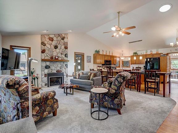 Spacious 3 Bedroom 2 Bathroom Ranch features a Bright and Sunny Living Room with Vaulted Ceilings and Gas Fireplace, Chef's Kitchen with Center Island and Plenty of Cabinets with Pull Out Shelves, First Floor Landry Room with Custom Shelving, Master Bedroom with En-Suite Bath and Generous Closets, Airy Sunroom with Skylights (2020), Sola Tubes Throughout and Screened-In Porch! Entertain in your Sprawling 2/5 Acre Yard Complete with Covered Patio with Retractable Sunshade and Finished Deck! Updates Include New Water Heater (2021), Water Softener and Iron Curtain (2022), and RO System! Make Your Appointment Today!