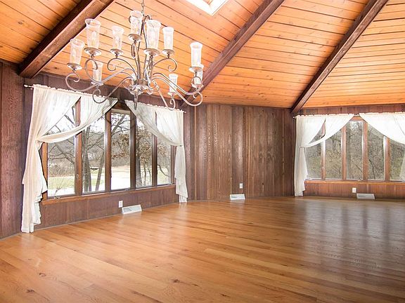 This fabulous one of a kind home in Roscoe is a must see! Walls of windows give you fantastic views overlooking the 2nd Green of the Ledges Golf Course in a quiet wooded setting. Among the distinctive features: An open floor plan featuring a rotunda shaped great room, dining room and kitchen with knotty pine beamed ceilings, central limestone fireplace and there are hardwood floors throughout. The cooks kitchen is a dream with Black Walnut countertops, solid walnut cabinetry, and stainless steel appliances including a 6 burner JennAir cooktop, Fisher Paykel Double Drawer Dishwasher, Built in Refrigerator and Double Convection Ovens. No tight laundry room here! Counter space galore and the washer/dryer is included. The finished lower level includes a rec-room, playroom, and additional Bonus space and your living space is expanded even further with a relaxing enclosed porch allowing you to enjoy the views and summer entertaining. We are excited to present 6827 Westgate Road!