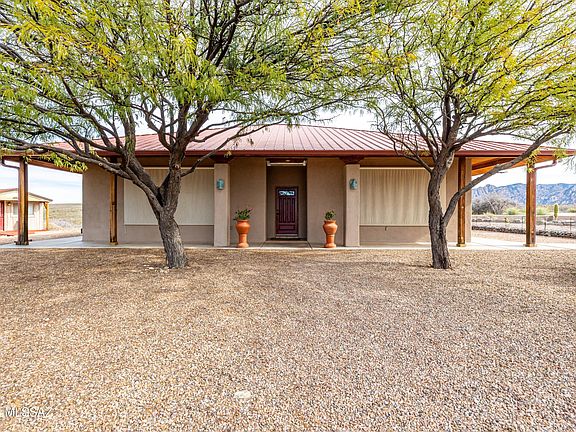 Backed up to state land, enjoy privacy and unobstructed views of the Dragoon Mountains. Impeccably maintained home on 36 acre horse property with gated entrance, detached garage/workshop, new in-ground pool, outdoor covered kitchen area, horse pen, shed, Arizona room and detached building with its own fireplace and AC perfect as a guest or office space. Inside boasts sizable living spaces featuring Saltillo tile and wood beams. Tongue and groove ceilings and thick adobe walls allow better insulation in the summer, while heated flooring and a beehive fireplace ensure cozy winter evenings. Enjoy benefits of having your own pedestrian access gate to state land, fenced pasture, private well, propane tank, as well as, owned solar and water softener systems.