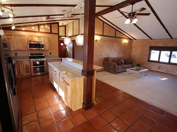 Bring your horses! Welcome home to this spacious, 5 bedroom, 3.5 bath ranch-style property. Complete with a beautiful NEW Kitchen, metal roof, Arizona Room, and attached guest quarters. This 4.34 acre corner lot is fully fenced and cross-fenced and comes equipped with horse facilities: round pen, horse stalls, tack/feed storage, and a metal hay cover (large enough to double as covered RV parking). Need storage?...Property boasts a single detached garage, separate workshop, and a 10x20 storage pod. Let's not forget to mention the fenced garden, dog run, and mature mesquites and pines surrounding the home. Must see to truly appreciate all this property has to offer...Call today to schedule a showing!
