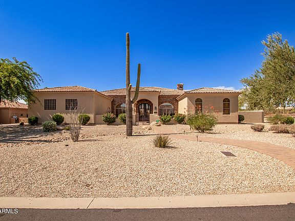 Beautiful custom home on almost an acre without an HOA. This home offers exquisite finishes throughout & space for all your needs. No detail has been spared...travertine flooring in Versailles pattern, solid 8' alder doors, raised panel alder cabinetry, granite counters, ledgestone accents both inside & out, custom ceiling treatments & light fixtures, gourmet kitchen w/stainless appliances & gas cooktop, office w/custom built-ins, media room/den between (2) secondary bedrooms, spacious master w/luxurious bath & generous closet w/custom built-ins, & 4 car garage w/cabinetry & finished flooring. The resort-like backyard is perfect for entertaining w/pebblesheen pool & spa, built-in BBQ, spacious covered patio, firepots, ramada w/fireplace & sport court.