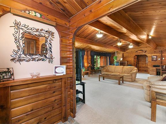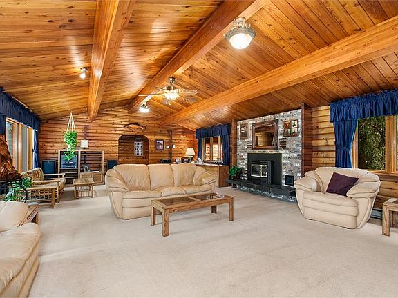 Majestic property surrounded by mother natures finest. This 3 bed, 1.75 bath home features a beautiful slate entrance which leads you into the awesome great room with wonderful views of the river. Also, enjoy the river views from the outstanding, remodeled kitchen with stainless steel appliances and gorgeous slab granite. This amazing log home includes an office, pasture, RV parking, outbuilding. Only 3 short minutes from town. Close to all amenities and too many special features to list.