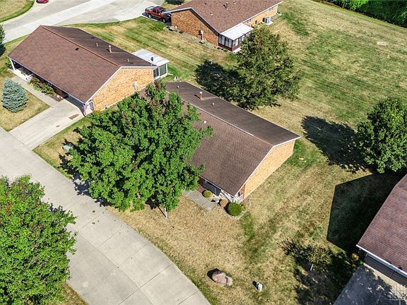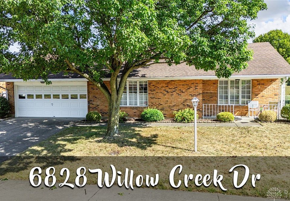 Popular Willow Creek Estates! Located in quiet, 55+ maintained community. Free up your time & live an easier lifestyle. Ready to move into, this home offers 1,343 square feet of living with 2 bedrooms, 2 full baths, & oversized 2-car attached garage. Quiet community, with green space to the rear for a peaceful view. Enjoy & relax with your morning coffee on the inviting covered front porch. Eat-in kitchen with lots of cabinets & counter space. All appliances stay, including washer & dryer. Dishwasher, microwave & disposal new in September 2025. Spacious bedrooms, one with walk-in closet & the other with double closets. Large utility room. Furnace & AC new 2021. Water heater 2019. HOA fee $95/month includes lawncare, trash removal, leaf pickup, snow removal of streets & maintenance of common areas. Convenient to I-70, I-75, WPAB & international airport. Close to Huber Heights & Vandalia shopping, grocery, restaurants, YMCA, Aquatic Center & Rose Music Center. All brick for easy exterior maintenance. No steps to climb. No mowing! Garage has workshop area. Seller providing 1-year Cinch Warranty to buyers for peace of mind. Easy to show. Occupancy at closing!