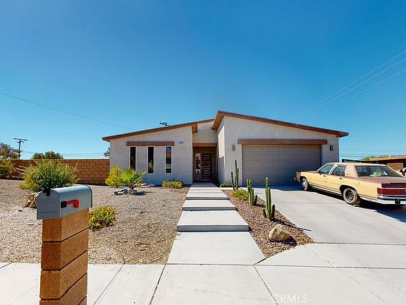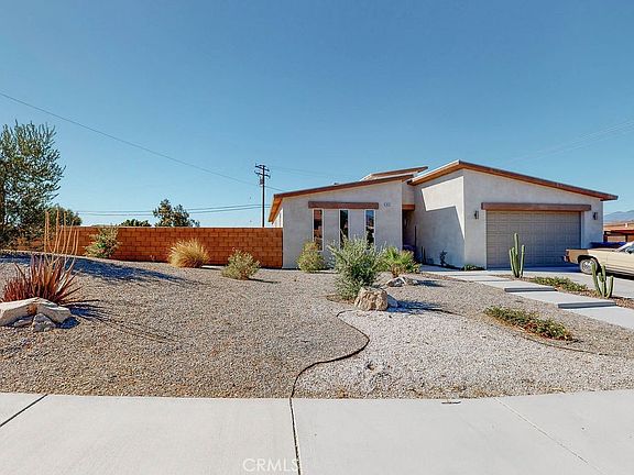 Charming home in the heart of Desert Hot Springs. This delightful 4 bedroom, 3 bathroom residence spans 2,009 square feet of living space and an attached 2-car garage. Situated on a spacious 10,019 square foot lot, this property boasts amazing views and features low-maintenance, water-efficient desert landscaping. As you enter the home, you will find the well-appointed bathrooms, bedrooms and the dedicated laundry room with built-in cabinets. The two guest bathrooms include shower/tub combos, single sink vanities, and tile plank flooring. The three additional bedrooms also feature tile plank flooring, closets, ceiling fans and generously sized windows that infuse each room with a refreshing ambiance. The spacious living room takes center stage, featuring tile plank flooring and a cozy fireplace. The abundance of windows and sliding glass door fill the rooms with warm, natural light. The kitchen, offers ample counter space with light-colored countertops and plenty of cabinet space. It is equipped with a stainless steel 5-burner stove with middle warmer and oven, recessed lighting, a dishwasher and an island with seating for 2, making it perfect for all your culinary needs. The adjacent dining area and sliding glass door provide easy access to the backyard, ideal for indoor-outdoor living. The spacious master bedroom impresses with tile flooring, a ceiling fan, and a sliding glass door leading to the backyard. The large attached bathroom featuring a walk-in closet, a dual sink vanity, a walk-in shower and soaking tub. The expansive outdoor area serves as a blank canvas for your landscaping preferences, providing plenty of space in both the rear and side yards to add your personal touch. The property features a lawn area and a patio, perfect for relaxing or entertaining guests. Whether you envision a garden, a space for outdoor gatherings, or a play area, this property can cater to your desires and even has a concrete side yard for RV parking. Conveniently located near major highways, shopping centers, public transportation, and dining options, this home ensures both comfort and convenience. Don't miss the opportunity to make this charming Desert Hot Springs residence your own!