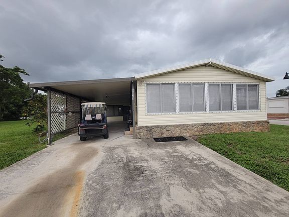 Palm Lake Estates - The Best Home in the Neighborhood! Welcome to this stunning 3-bedroom, 2-bath home that has been completely redone from top to bottom-offering you the perfect blend of style, comfort, and peace of mind. Priced to sell at $114,000, this home truly sets the bar high for value and quality in Palm Lake Estates. Every Detail Upgraded: Brand-new roof, plumbing, electrical, and AC system-worry-free living for years ahead. New siding and energy-efficient windows, giving the home a fresh, modern look. Rich flooring, drywall, and elegant crown molding create a warm and polished interior. Spacious lanai and screened-in porch for relaxing Florida evenings. Your Dream Kitchen: Designed with the chef in mind, this kitchen is both beautiful and functional. It features unique custom pull-out cabinets, perfectly built to store and organize all of your kitchen equipment. From pots and pans to small appliances, everything has its place-making this kitchen a true culinary dream come true. Practical Comforts & Extras: Oversized carport with plenty of parking and room for a golf cart. Huge shed for all your tools, hobbies, or storage needs. Large private yard tucked into a quiet cul-de-sac-perfect for gardening, entertaining, or just enjoying the peace and privacy. Why This Home Stands Out: This is not just renovated-it's been reimagined better than new construction. Nothing has been untouched, making it the most complete, move-in-ready home in the community. Every corner radiates comfort, convenience, and pride of ownership. Prime Location: Only 3 miles from the ocean with shopping, dining, and entertainment at your fingertips. Palm Lake Estates also offers resort-style amenities in a friendly, secure environment. Important Info: All lot rents must be verified directly with the office. Application requirements include income, credit, and background approval. This is truly the best home in Palm Lake Estates-don't wait, schedule your private tour today and claim your piece of paradise!