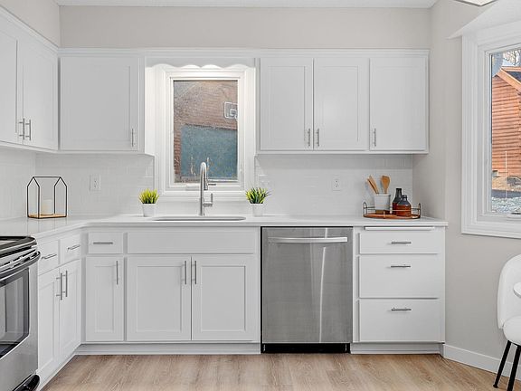 Nestled in a serene cul-de-sac, this is a beautifully updated 4-bedroom, 2-bathroom home in the Maple Grove/Osseo School District. This stunning 4-level split boasts a brand new roof, freshly painted exterior, and a spacious interior with vaulted ceilings in the living room, creating an open and inviting ambiance. The home features modern updates including fresh carpeting, stainless steel appliances, quartz countertops, and hard surface flooring. The updated bathrooms and a cozy fireplace in the lower level with walkout enhance its appeal. Perfect for family life, it sits on a large partially fenced lot and is conveniently walkable to Fish Lake Regional Park, offering abundant outdoor activities. Proximity to Arbor Lakes Shopping Center and a central location for any commute adds to its allure. This home, making it a perfect blend of comfort, style, and convenience.