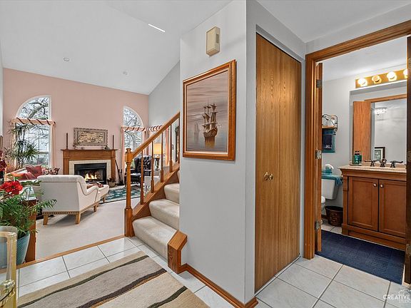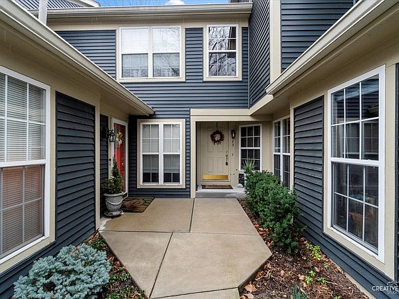 Wow! Beautiful partial brick front unit tucked away in a quiet cul-de-sac! Private entrance! Bright and open floor plan! Tile entry! Sun filled 2-story living room with skylights, 1/2 round windows and cozy gas log fireplace with custom mantle! Updated eat-in kitchen with custom 42" oak cabinetry, undercabinet lighting, tile backsplash and separate eating nook with extra built-in cabinets! Separate dining room with sliding glass doors to the private patio and many mature trees for extra privacy! Convenient 1st floor laundry! 2nd floor loft surrounded by built-in oak shelving giving you that cozy library feeling! Spacious master bedroom with cathedral ceiling, 1/2 round window, huge walk-in closet and gorgeous remodeled bath with glass shower with custom tile work, extra built-in cabinetry and upgraded vanity! Owner hates to leave! Mint condition! Close to I-90, train and shopping! A real gem!