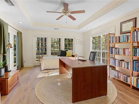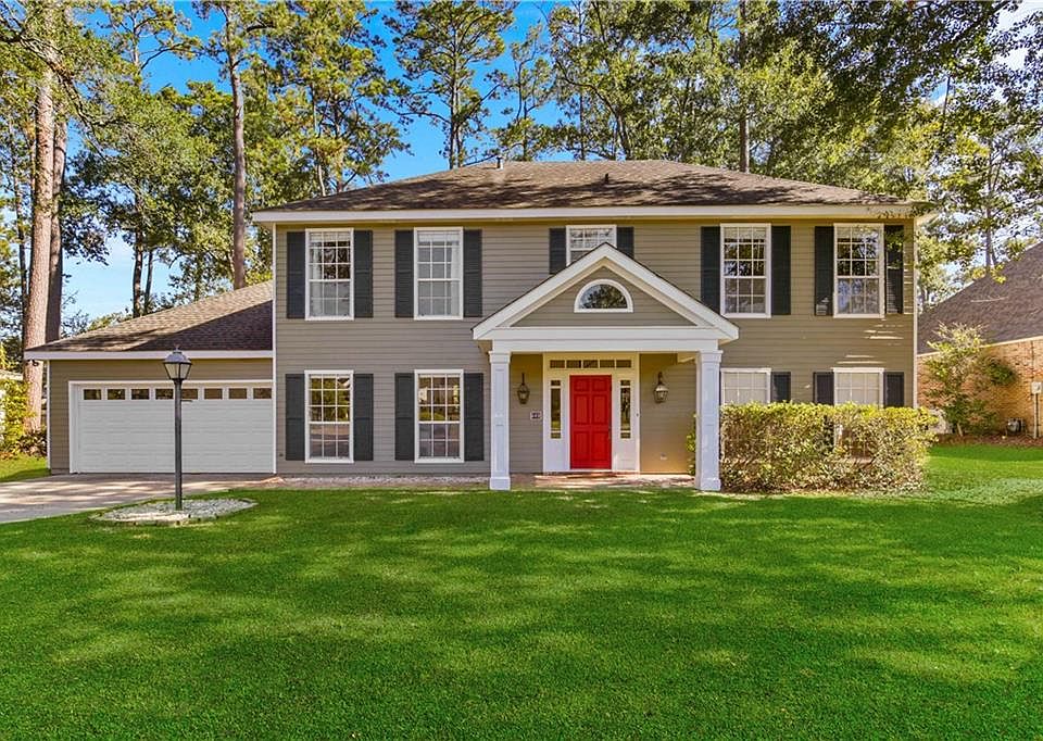 Nestled on a quiet cul-de-sac in sought after Beau Chene, this stately two-story Colonial offers spectacular panoramic golf course views from every room. Recent renovations include a new kitchen with custom cabinetry, sleek countertops, stainless appliances which include double ovens plus new wood laminate flooring, fresh interior and exterior paint and enhanced landscaping. Spacious primary suite features a private balcony overlooking the trees and expansive fairways-perfect for morning coffee or evening sunsets. The tremendous downstairs sunroom is currently used as an office and guest suite, provides incredible flexibility and could easily serve as a 4th bedroom or second living area. Enjoy a light and bright floorplan with tall ceilings, plenty of windows and french doors and a cozy corner gas fireplace in the family room. Located in a top rated school district, this home combines comfort, style and convenience in one of the area's most desirable golf communities. HOA includes water, sewage, trash, greenspace and common area maintenance, 24 hour security and mosquito control. Seller is offering 1% of the sales price towards buyer's closing costs and pre-paids at act of sale!