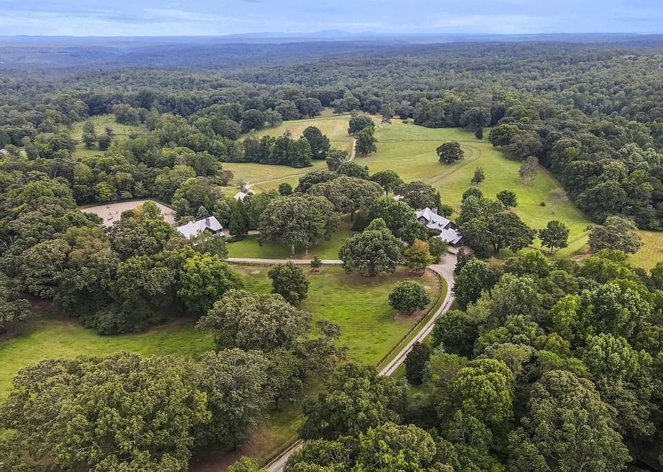 Experience absolute perfection on this 70 acre equestrian farm with rolling pastureland, three barns with 16 stalls, an incredible main house, a pool and a large guest house with elevator. Approached through a gated entry, the driveway winds past acres of fenced pastureland, beautiful hardwoods and riding arenas as you proceed to the wood and cedar-shingled main house. Evoking a bygone era, the home feels centuries old yet provides all the perks of modern living. Enter from the covered front porch into the enormous two-story grand hall with dining room, meant to feel like a log cabin with its wood-lined walls, wide-plank floors, exposed trusses and large stone fireplace. The adjacent gourmet kitchen provides all the luxuries for today's lifestyle with a large island, double-stacked cabinetry, stainless steel appliances, stone countertops, charming butler pantry and walk in pantry, a farmhouse sink and a nearby substantial laundry room. The kitchen flows seamlessly into the fireside keeping room and casual dining area. Huge double-hung windows wrap around the room and frame the sprawling views of the surrounding fields. French doors lead to the charming oversized screened porch with plenty of room for separate dining and sitting areas. Three en-suite bedrooms and large mud room complete the main level. Upstairs, you will find a large open office loft space, overlooking the grand hall as well as the primary bedroom featuring a cathedral ceiling with rustic beams, a fireplace, stained glass clerestory windows, a dressing room with two walk-in closets and an en suite bathroom with dual vanities, a jetted bathtub and a separate shower. Head downstairs to the incredible Garden & Gun-style terrace level, which features a wine cellar, fireside professional theatre room two built-in desks, a wet bar, a slate tiled game room, a gym or bedroom and a full bathroom. Venture outside to the refreshing, heated, saltwater pool with a large stone pool deck, a diving board and a motorized retractable pool cover. The property also features a four-stall barn with a tack room, a 12-stall barn with a washroom, and ample storage space. Spacious guest cottage above with elevator up is on the second level with a two-bedroom guest house with large additional office space. Perfect for a caretaker, this luxurious guest house includes an open floor plan with a two-story cathedral ceiling in the dining and living rooms, a white kitchen with an island, two large bedrooms, two bathrooms and a huge screened porch. Completely private and bordering a lake and creek with charming walking bridge, the property also includes an oversized arena, a round pen and a considerable outbuilding with a workshop and additional storage. Short ride by horse to Dawson Forest with endless trails (trail ride, mountain bike, hike). The property is also located close to a Elliot Field Private Airport, Atlanta Motorsports Park, Amicalola Falls, Lake Lanier and the North Georgia Outlets. A once-in-a-lifetime opportunity, this property is an equestrian lover's paradise!