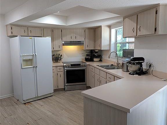 This cozy block 3 bedroom, 2 bath home is located in a quiet easy access neighborhood. Enter into a spacious (24X14) living room with an open floor plan that leads to the dining/kitchen combo with laminate flooring throughout. Well proportioned kitchen (12X10) with ample cabinetry and countertops, stainless steel range and dishwasher, large pantry, and recessed lighting. The primary bedroom is (14X13) with carpet, and has a large walk-in closet. The en-suite bathroom has an updated vanity and walk-in shower . The two additional bedrooms, (14X10) and (13X10) and have carpet and double closets that are great for storage. The main bathroom has been updated and includes a tub. There are two additional closets in the hallway. Home also includes a utility room (11X6) with sink and washer/dryer hookup. The two car garage has been partially converted to living space (14X10) and can easily converted back. Screened porch (18X12) overlooks the fenced private yard and can be accessed through dining room. Located just minuets from I-4 and accessible to Florida's many attractions, restaurants and shopping.
