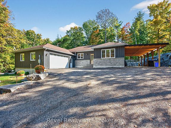 Discover the perfect blend of comfort, function, and Northern charm in this ranch bungalow in the heart of Tiny -just steps from Lafontaine Beach Park and Tiny Treats Deli. Built in 2013, this thoughtfully designed home is ideal for those looking to simplify without sacrificing space, privacy, or practicality. The main level offers an open-concept layout with hardwood and tile flooring, three bedrooms, and two full bathrooms, including a bright primary suite with walk-in closet and ensuite. The kitchen and living area flow seamlessly to a covered 16' x 16' deck overlooking the landscaped backyard-featuring armour stone, stamped concrete patios, and peaceful green space behind. All the outdoor work has been done for you-just add your furniture and enjoy. For the hobbyist or collector, this property is a dream. A 26' x 26' workshop, a 36-foot carport, and a double attached garage with inside entry offer all the space you need. The garage and workshop are heat-ready, and the basement includes a rough-in for in-floor radiant heating, plus a walkout with high ceilings, an additional bedroom, and a full bathroom. Additional features include main floor laundry, propane forced air heat, central air, 200-amp service, crushed asphalt driveway, and a storage shed with lean-to. Set on a 100' x 150' lot backing onto greenspace in a friendly, walkable community, this home offers the lifestyle so many are searching for-peaceful, practical, and perfectly located minutes from Midland, marinas, and Georgian Bay adventures.
