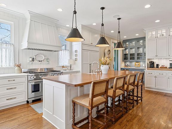Imagine stepping back in time to the historical Victorian era. This enchanting home seamlessly combines timeless charm with contemporary luxury, making it truly exceptional. This home commands attention with its stunning presence and inviting wrap-around screened porch. Every detail has been meticulously crafted, featuring exquisite custom finishes, built-in cabinets, and two elegantly appointed fireplaces. With six spacious bedrooms and five private bathrooms, this residence ensures comfort and privacy for both family and guests. The separate suite above the attached 4-car garage offers versatility - ideal for a nanny, in-laws, or a dedicated private office. You'll love this magnificent kitchen, which opens to the vaulted dining area and the cozy family room. The gourmet kitchen features top-of-the-line Sub-Zero beverage drawers, a stunning tongue-and-groove backsplash, a sleek coffee bar, a sophisticated wine bar, chic glass-front display cabinets, a walk-in pantry, marble countertops, and a solid maple island with seating for up to six. Custom lighting perfectly accentuates every detail.
