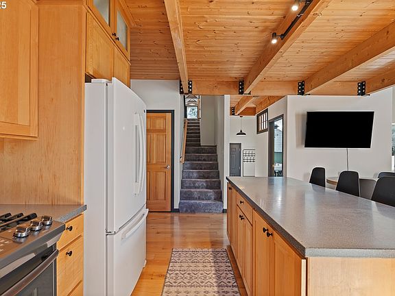 Experience the ultimate in Columbia River Gorge Living at this picturesque Hood River retreat, perfectly positioned just minutes from the charm of downtown’s boutique shops and fine dining. Tucked among lush greenery, this home offers an exceptional sense of peace and tranquility, paired with timeless Northwest elegance.An abundance of natural light fills the open main living area and kitchen, where soaring windows create a seamless connection to the outdoors. Enjoy morning coffee or evening wine from the porch overlooking the yard—a perfect setting for relaxation or entertaining.With three spacious bedrooms, a versatile bonus room, and two bathrooms, this home provides ample space for yourself and guests. Whether you’re seeking a luxurious full-time residence or a refined vacation escape, this property captures the essence of Hood River living—where comfort, sophistication, and natural beauty converge.