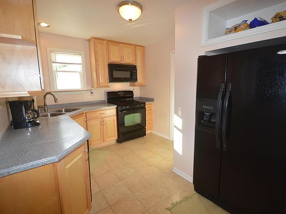 Very well kept, perfect for a single person, couple or small family. Open floor plan, remodeled kitchen featuring ceramic tile, new cabinets, stone counter tops & includes the appliances. Updated bath, first floor laundry. Open staircase leads to a large bedroom with walk in closet. You'll love the private back yard that includes the patio set. 1.5 car garage includes the freezer & refrig. Cheaper than renting.