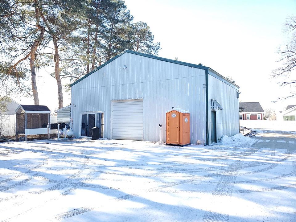 1 acre lot with wooded privacy. Pole Building is approximately 1,200 sq ft with additional upper storage. Equipped with electrical and water and heat. Propane tank is leased. New roof 2 years old. This lot is zoned R-1. Current zoning does not allow a business to be run on this property.