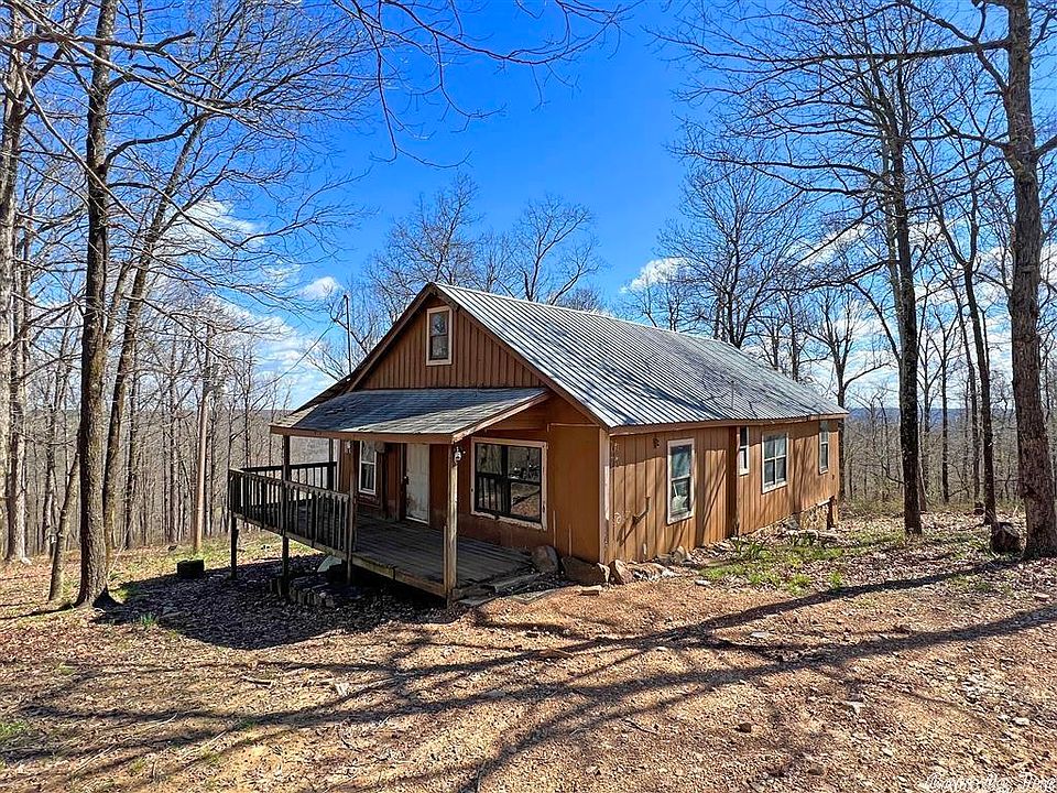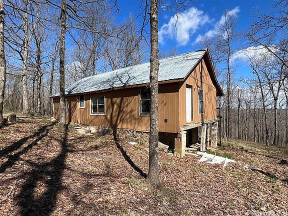 Cozy cabin located on 5 wooded acres within miles of Mountain View! This 2 bed, 2 bath, 1,325 sq. ft. cabin is in need of some attention but could be adorable once completed. It would make a great ''cabin in the woods'' or even a money making Vacation Rental. The cabin sits perched on the hill with a nice seasonal view of the Ozark Mountains. There's a wrap around porch and outbuilding too. On the inside there is a small loft area, 2 full bedrooms, utility room, kitchen and 2 bathrooms.