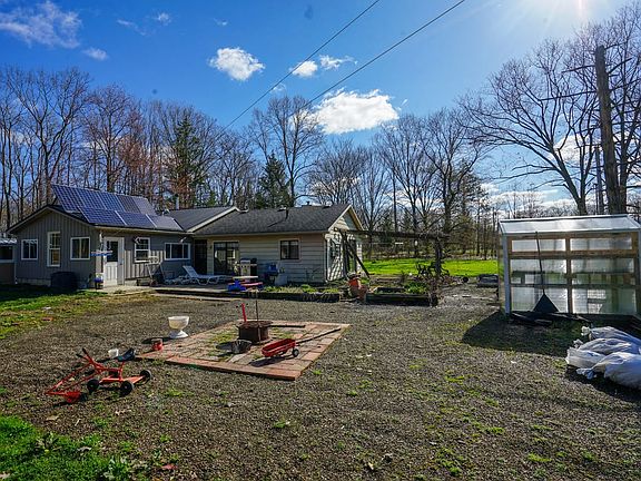 Nearly 8 acres and a ranch home for sale in Ashtabula County, Ohio. This may be the perfect place for your next home. Enjoy the quiet of the country and privacy of living surrounded by woods. Features of the property include: - Home was a 4 bedroom converted to 2 bedrooms but could easily be changed back - 2 full bathrooms - Large Country kitchen with dining area - Big living room with wood burning fireplace - Craft area with wood burning stove - Nice size addition currently used as mudroom / storage - Solar system mainly used to power well pump but could easily be expanded - Large back porch - 2 plus car garage with a built on barn with stalls and hay loft - 7.802 total acres - Property is mostly wooded - Nice hardwoods - A lot of maples perfect for making maple syrup (owners made dozens of gallons last season) - Seller does not own the mineral rights - Small pond makes a great watering hole for wildlife - Grapes, blueberries, elderberries, and more already established - Large fenced in garden area - Good hunting opportunity - Easy access to Rt 11 This would make a great place for retirement or raising a family. Home could use some TLC and some projects finished. Current annual taxes are only $1164. Call today with any questions or interest.