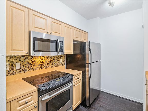 Fantastic 1 bedroom, 1 bath on top floor of gated complex built in 2005. High ceilings. Laminate wood floors throughout all living areas. Stainless steel appliances. New full size washer and dryer in unit and private covered balcony. Complex offers: Pool, BBQ, clubhouse, billiard room and handball court. Located in South Miami area close to U of M.