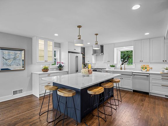 NEW EXTENSIVE REMODEL! Elevate Your Senses as You Step into 6832 Creston offering Unparalleled Quality Craftsmanship! Enter the Charming Front Porch and Classy Home through the inviting double glass doors. Stunning hardwood floors throughout the top two floors welcome you. The Great Room presents a fireplace, bay window and layered ceiling. The Formal Dining area is adorned with lovely custom molding and can be utilized as a main floor office, sitting area or library. An expansive Brand New Kitchen is a Chef's Dream offering a large island, an abundance of soft close cabinetry and designer appliances including wine cooler. High level Quartz countertops elevate the space. This level also offers a Family Room, Office area with fireplace, Newly Designed Laundry/Backhall area with lockers and Guest Bath. The Second Floor presents 5 Bedrooms and 3 Bathrooms! The Spacious Primary Suite boasts a large walk-in Closet and Luxurious Spa Bathroom with Designer Tub, Large Shower and Heated Floor. Another Large Bedroom provides a 3/4 Ensuite. There are 3 more Bedrooms on this level along with a Full Bath. The Lower Level provides an second Family Room, Craft or Game Room, 1/2 Bath and expansive room that can be used for a Theater/Media Room. The large Deck overlooks the spacious nearly flat backyard adorned with mature trees. The Location is Ideal! This Home is situated in a Popular Neighborhood, close to a sought after Elementary School and is minutes to Galleria, Southdale, Edina Pool, Parks, Library, Byerly's, the new Kowalski's and Lifetime Fitness! 15 Min to Downtown and Minneapolis International Airport. 2025 Remodel Includes: Brand New Kitchen, Complete Remodel on 4 of 5 Bathrooms (5th - Partial Remodel), Created 2 additional rooms in Lower Level, New Windows & Exterior Doors (Except for Lower Level), Furnace & A/C, All Appliances (except 2nd Laundry in LL), New Hardwood Floor in Den, Refinished all Hardwood Floors, New Carpet, over 1 Mile of New Trim (according to contractor), New Paint Exterior & Interior, Lighting Interior & Exterior, Door Handles, Driveway, Sidewalk, Epoxy Garage Floor, Some Landscaping, Tree Removal & Planting. New Roof in 2022. Rebuilt Chimney in 2021. Exceptional Property! Exceptional Location!