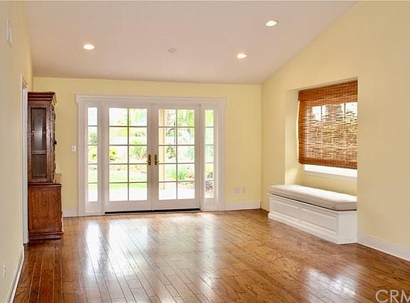 This delightful and meticulously maintained home with fabulous landscaped yard and private courtyard patio is welcoming and comfortable. It has 3 bedrooms including a big master suite, a fabulous customized office with lots of counter space and built-ins. Nice hallway with raised ceiling and skylights. The first level has wood flooring throughout, French doors and windows that lead to the outside patios and backyard. Living room has vaulted ceiling and fireplace. Dining room also with vaulted ceiling includes a China cabinet and window seat. The spacious kitchen with breakfast nook opens to the family room with built ins, lighted bar area and tastefully wallpapered wall. Neutral carpeting on the stairway and throughout the 2nd level. The big master suite has lots of built-in shelves, reading lights above bed area and a fabulous master bath with cedar lined walk-in closet, built-ins, window seat, separate shower and spa tub. Plantation shutters throughout the upstairs rooms. The expansive covered brick patio overlooks the lovely landscaped yard. On a clear day one could even see a bit of ocean too. Truly a lovely home for living enjoyment and entertaining!